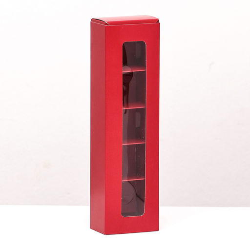 Цена за 5 шт. Коробка под 5 конфет с обечайкой, с окном, с тонкими разделителями, Красная 20*5,5*3,5
