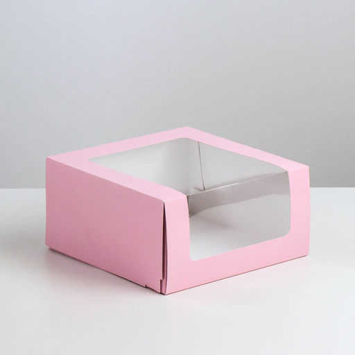 Цена за 5 шт. Кондитерская упаковка с окном "Мусс", розовый, 23,5 х 23,5 х 11,5 см
