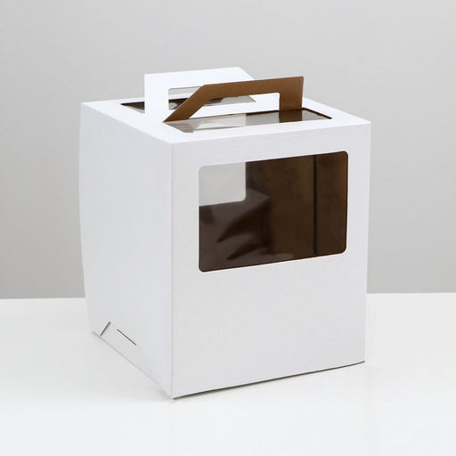 Коробка под торт 2 окна, с ручками, белая, 26 х 26 х 30 см