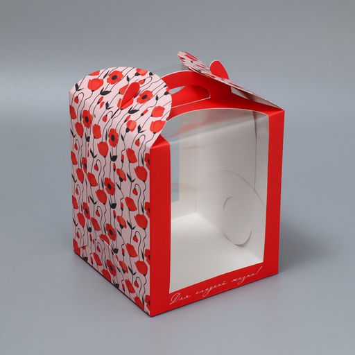 Цена за 5 шт. Складная коробка под маленький торт Маки, 15 15 18 см