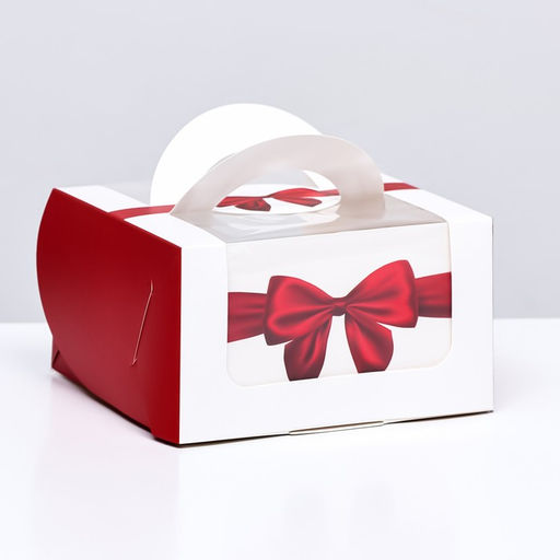 Коробка под бенто-торт с окном "Красный бант", 14 х 14 х 8 см