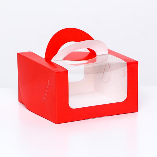 Коробка под бенто-торт с окном, алый, 14 х 14 х 8 см