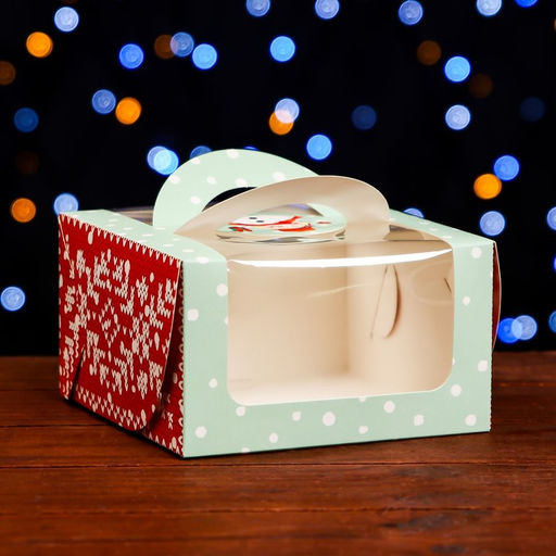 Коробка под бенто-торт с окном "Новогодний снеговик", 14 х 14 х 8 см