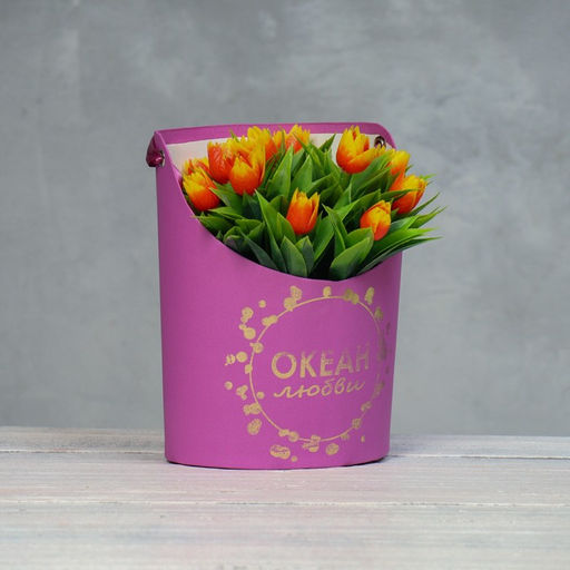 Переноска для цветов, ваза Овал с тиснением "Океан любви", фуксия 12,5 х 13,5 х 18 см