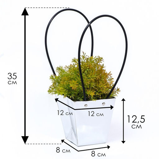 Цена за 10 шт. Сумка для цветов Серебро, влагостойкая, 12 x 12 - 8 x 8 - 12,5 см