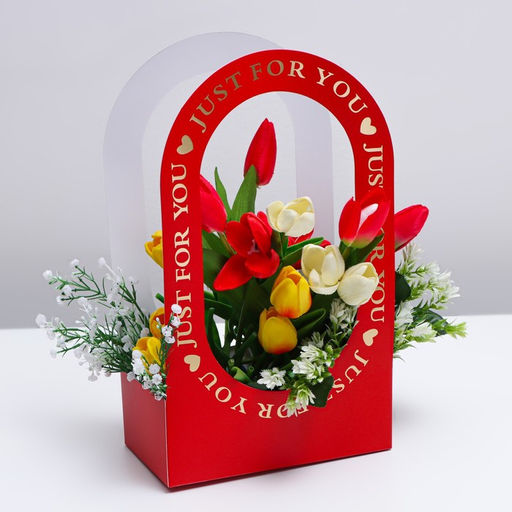 Коробка-переноска для цветов Для тебя 22 12 38 см, красная