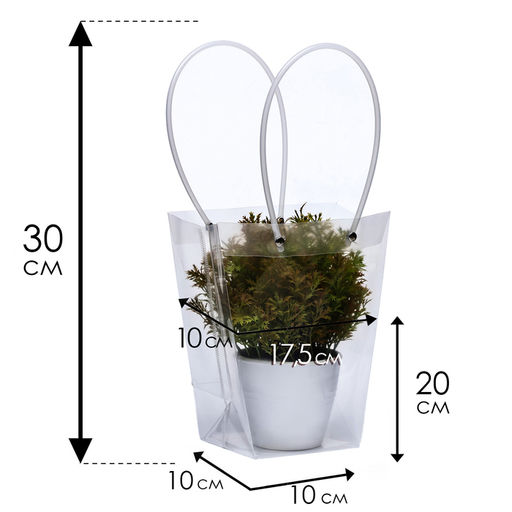 Цена за 10 шт. Сумка для цветов прозрачная влагостойкая, 17,5x10-10x10-20 см