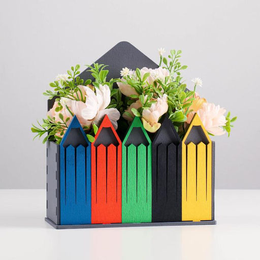 Кашпо деревянное 18720.4 см Конверт "Карандаши", серый