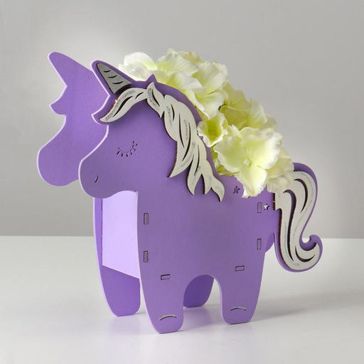 Кашпо деревянное 21.5721 см уникальное "Единорог", сиреневый белый