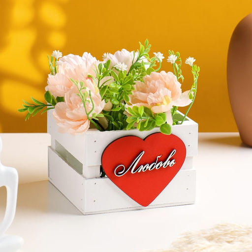 Кашпо деревянное реечное " Любовь" 13х13х10 см белый