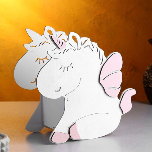 Кашпо деревянное для цветов и подарков "Единорог", розовое, 23х11х23 см