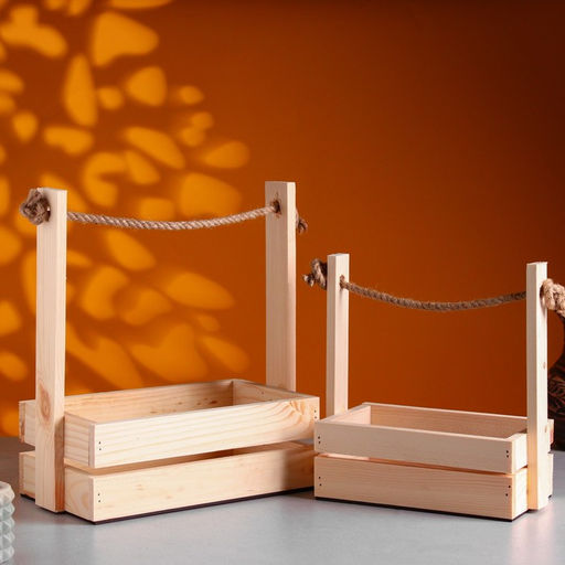 Набор кашпо деревянных 2 в 1 (25.51530; 201223 см) "Аром", ручка канат, Натуральная сосн 1006000