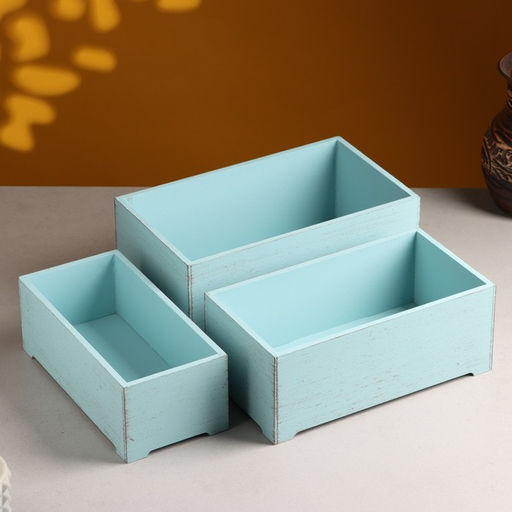 Набор ящиков деревянных "Прованс" 3 в 1 (25х14,5х10; 23х12,5х9; 21х10х8)см Серо-голубой