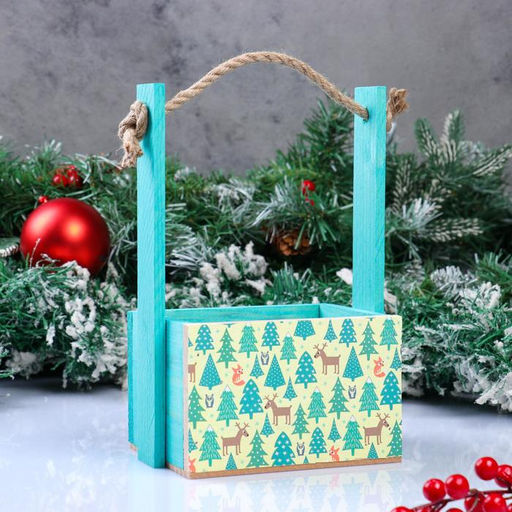 Кашпо деревянное, 15128.5(25) см "Пауль и Любовь. Новогоднее, Еловый лес", с принтом