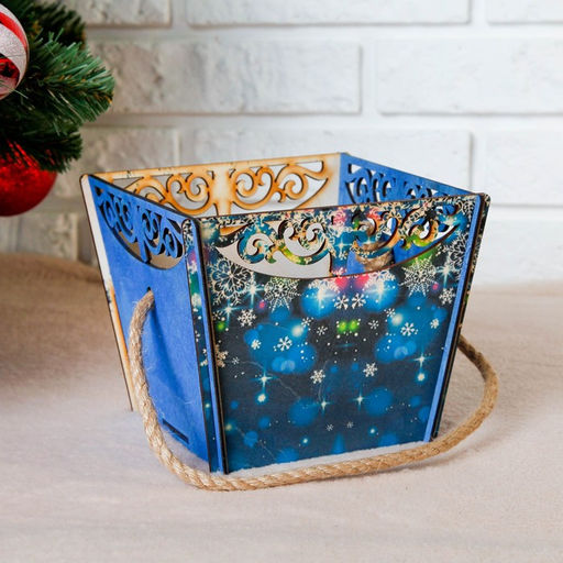 Кашпо деревянное "Корзина, новый год", самосборное, ручка- шнур, 17,917,314,2 см