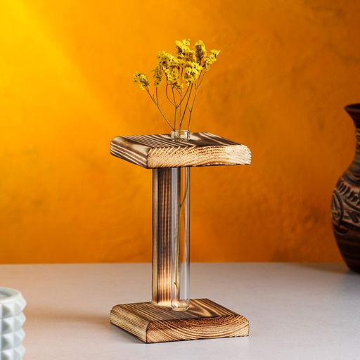 Кашпо деревянное 9916 см с 1 колбой "Квадрат", обжиг Дарим Красиво
