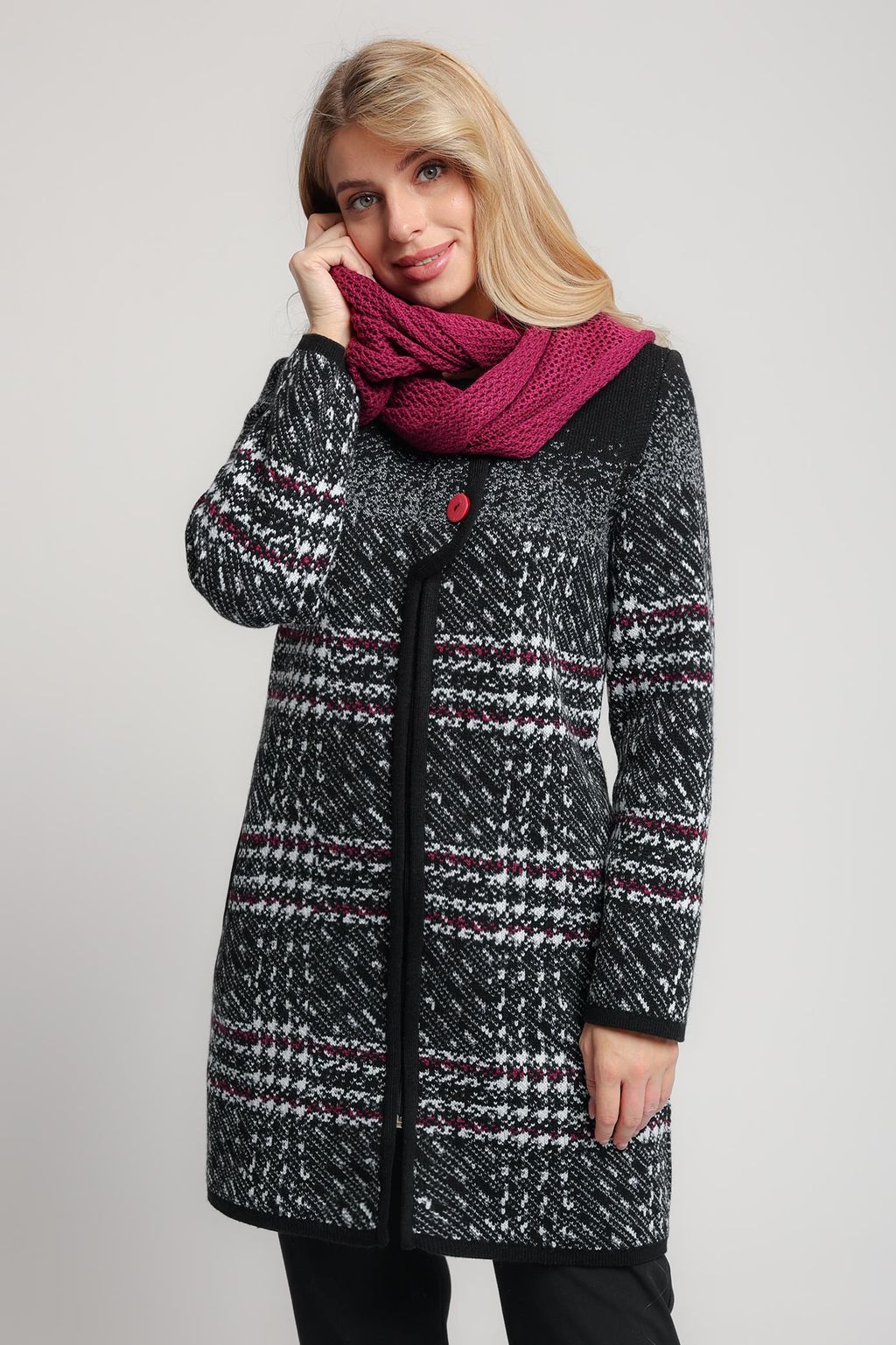 Кардиган В 1742/черно-ягодный (1330)