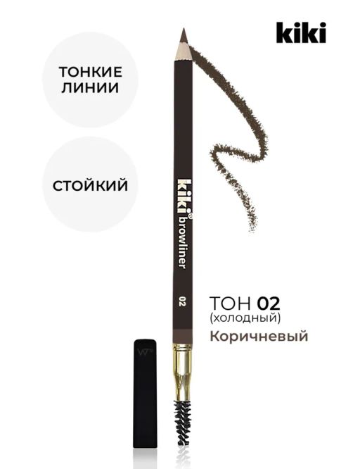 KIKI Карандаш для бровей с щеточкой 02, холодный коричневый