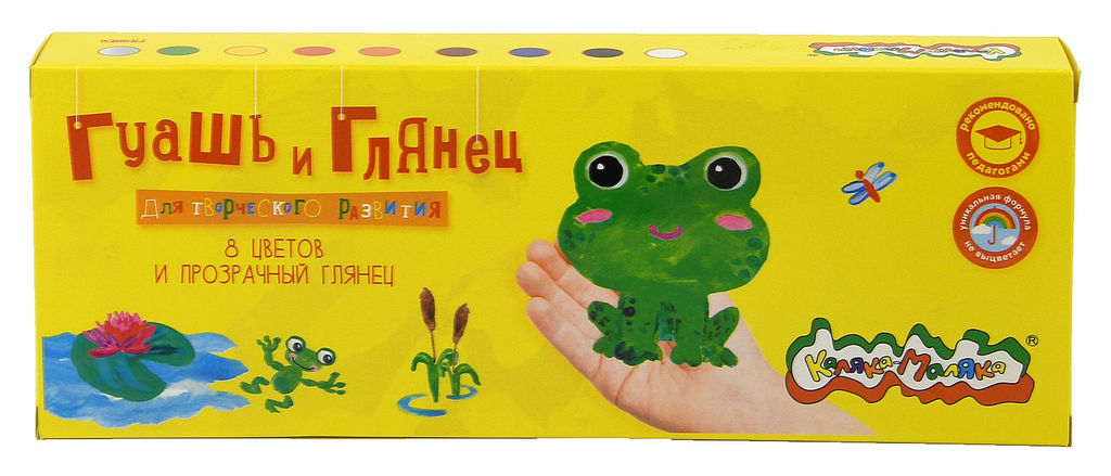 Гуашь Каляка-Маляка 8 цв. по 17,5 мл ассорти и 1 тюбик глянец