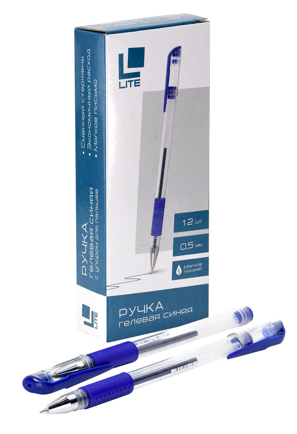 Цена за 10 шт.Ручка гелевая LITE, 0,5 мм, синяя, резиновый грип