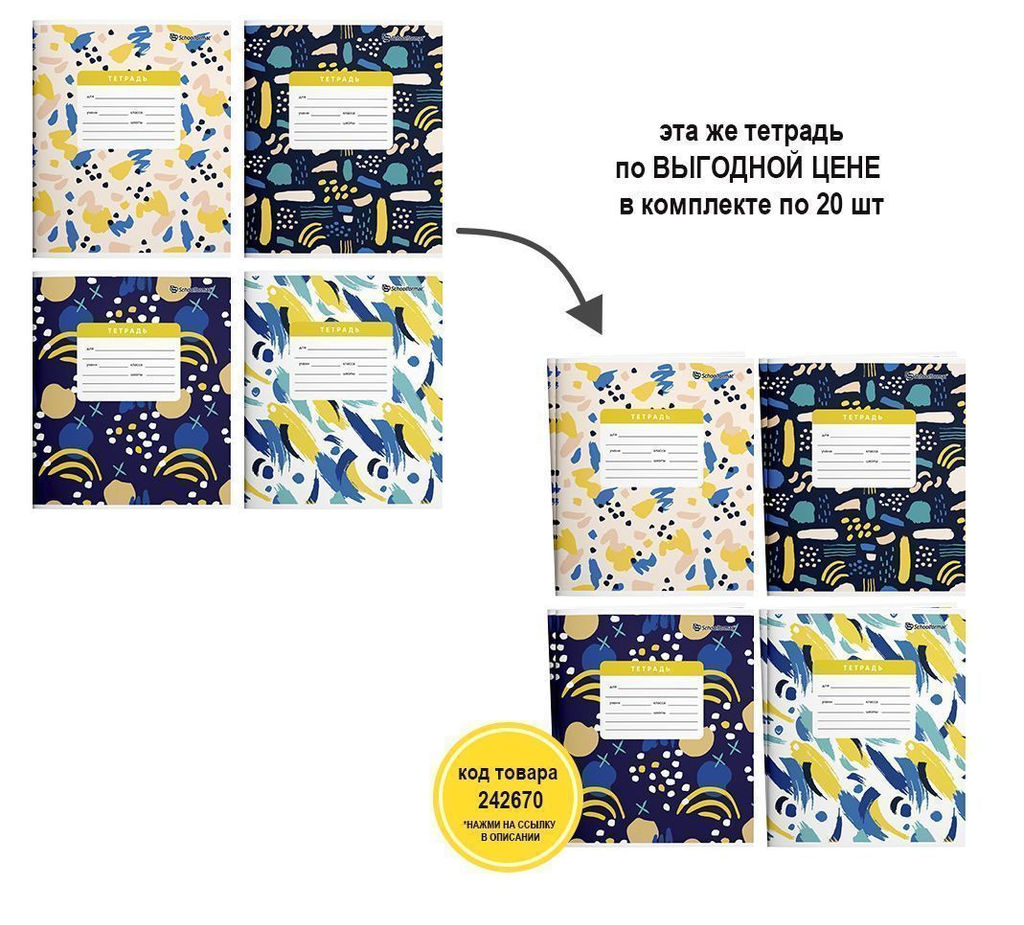 Цена за 5 шт.Тетрадь Schoolformat 12 листов, клетка, ЦВЕТНОЙ ПАТТЕРН мелованный картон, ВД-лак