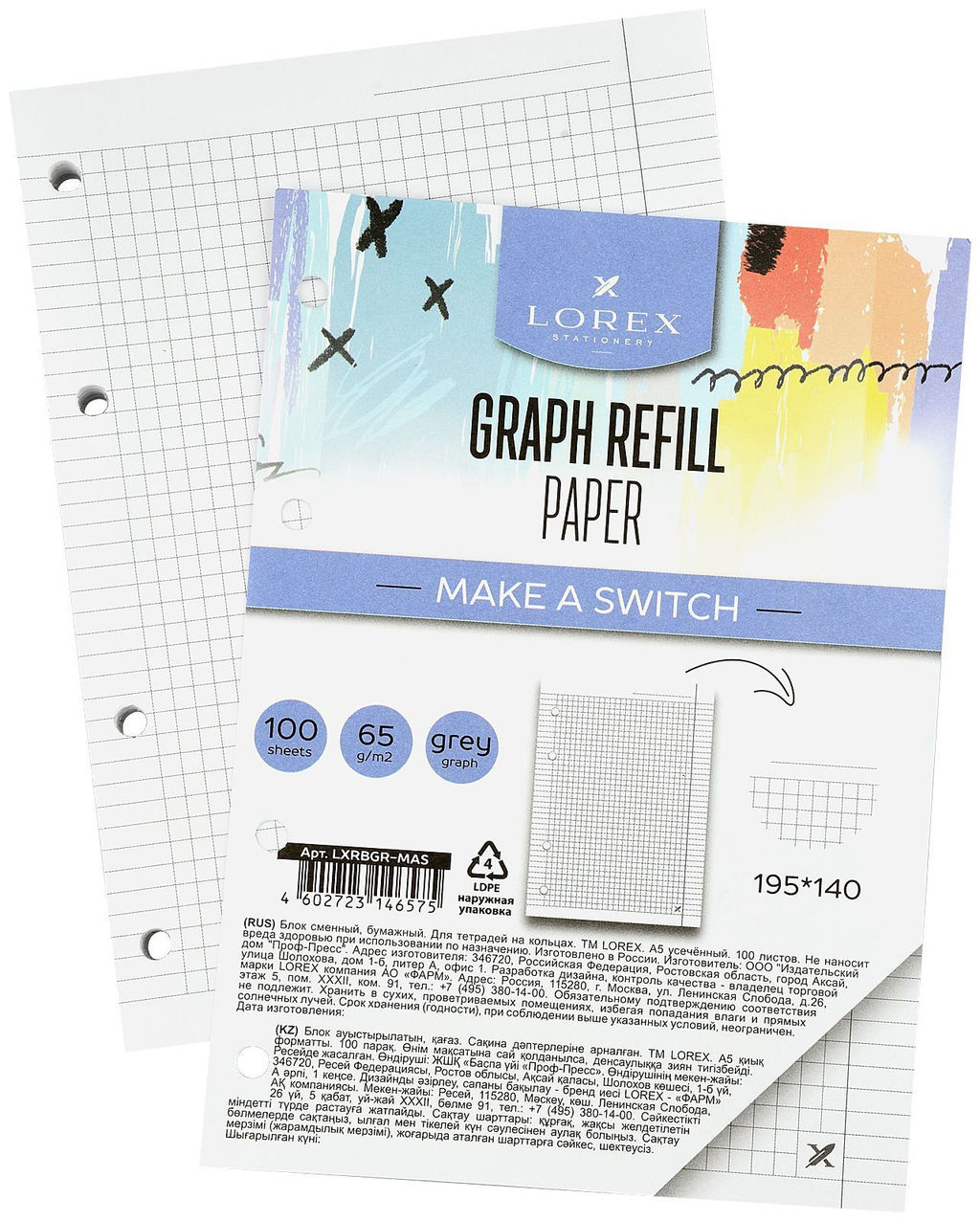 Сменный блок LOREX GRAPH 100 листов А5 белый в серую клетку серия MAKE A SWITCH