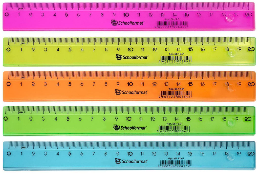 Цена за 5 шт.Линейка 20 см, пластик, ассорти