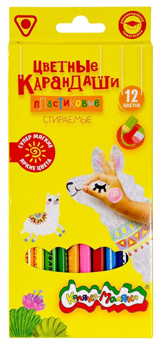 Набор цветных карандашей Каляка-Маляка 12 цветов стираемые, с ластиком, трехгранные, пласт...