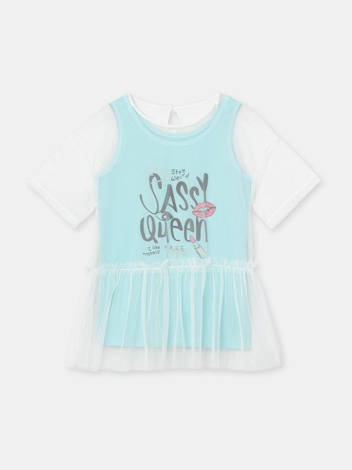 CRB wear/CSJG 63053-43-307 Платье модель "туника" для девочки, голубой/Ex.Cherubino