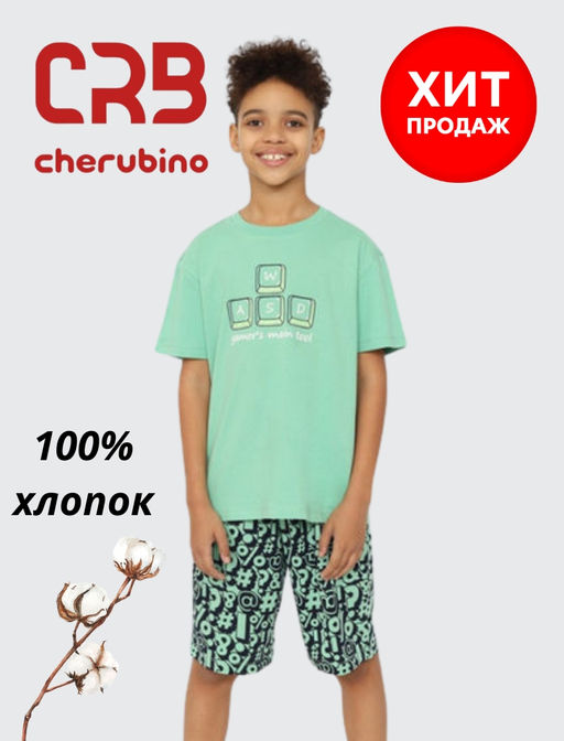 CRB wear/CSJB 50166-37 Пижама для мальчика (футболка, шорты),зеленый/Ex.Cherubino