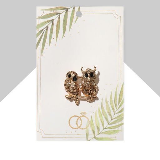 Брошь "Сова и Филин", цвет золотисто-чёрный в золоте