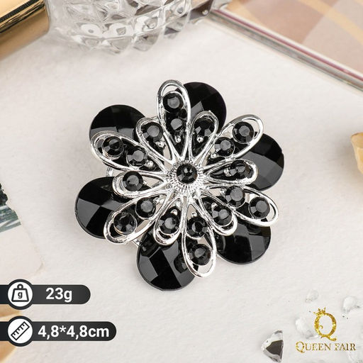 Брошь "Цветок" астры, цвет чёрный в серебре