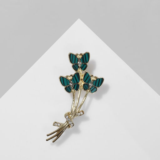 Брошь "Бабочки" малахитовые, цвет бело-зелёный в золоте