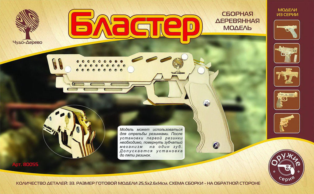 Сборная деревянная модель Чудо-Дерево Оружие Бластер для стрельбы резинками