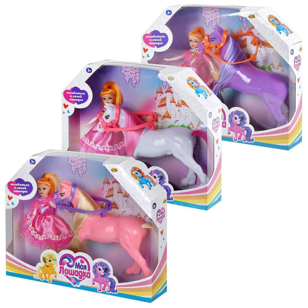 Игровой набор ABtoys Моя лошадка Куколка и лошадка 3 вида