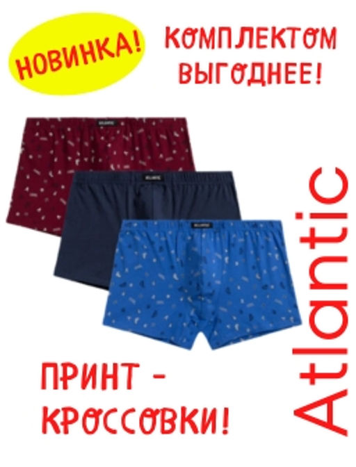 ATLANTIC 3MH-188 Трусы шорты Cool - набор 3 шт. небесно-голубой + темно-синий + винный