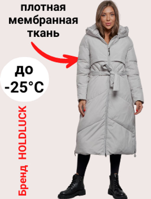 Пальто утепленное молодежное зимнее женское светло-серого цвета 52356SS