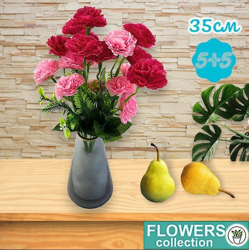 Букет гвоздик фукс+роз 35см 5+5 бутонов