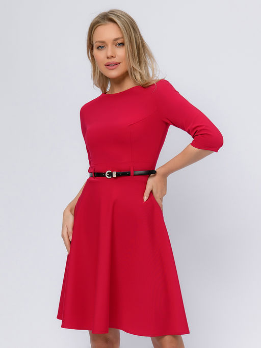 Платье красного цвета с рукавами 3/4 и расклешенной юбкой