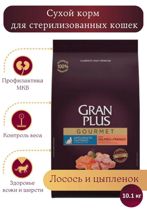 Скидка 50%!!! Гранплюс сухой корм для стерилизованных кошек лосось и цыпленок 10,1кг