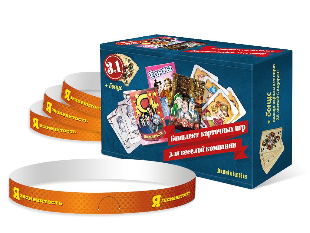 Набор из 3-х карточных игр "Фанты, Мафия, Я знаменитость" в коробке арт.7772 /25