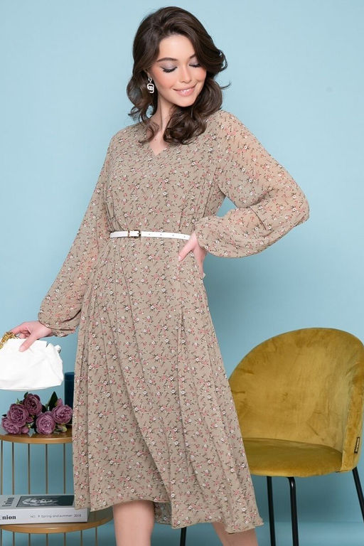 Платье "Волшебная история" (цветы/олива) П7033