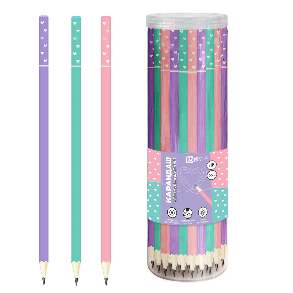 Цена за 36 шт. Карандаш чернографитный арт. 67810 / 36 СЕРДЦА