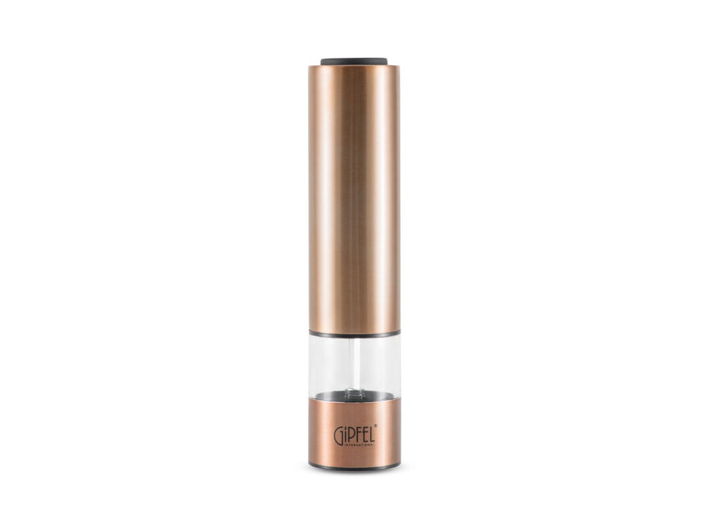 9149 GIPFEL Мельница электрическая TROPICA для соли и перца, 22 см. Цвет: медный. Материал: нерж. сталь, органическое стекло, керамика, пластик. В комплекте без батареек (4ХАА)