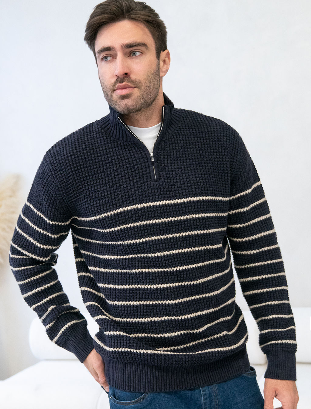 VILATTE / Свитер фактурной крупной вязки с металлической молнией