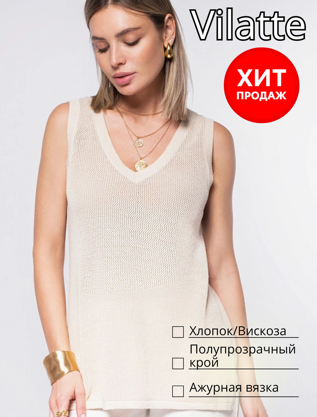 VILATTE / Летний топ полупрозрачной вязки из хлопка