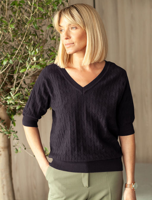 VILATTE / Джемпер с из хлопка с нейлоном фактурной вязки