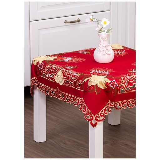 СКАТЕРТЬ "КОЛОКОЛЬЧИКИ НА КРАСНОМ" 85*85 СМ