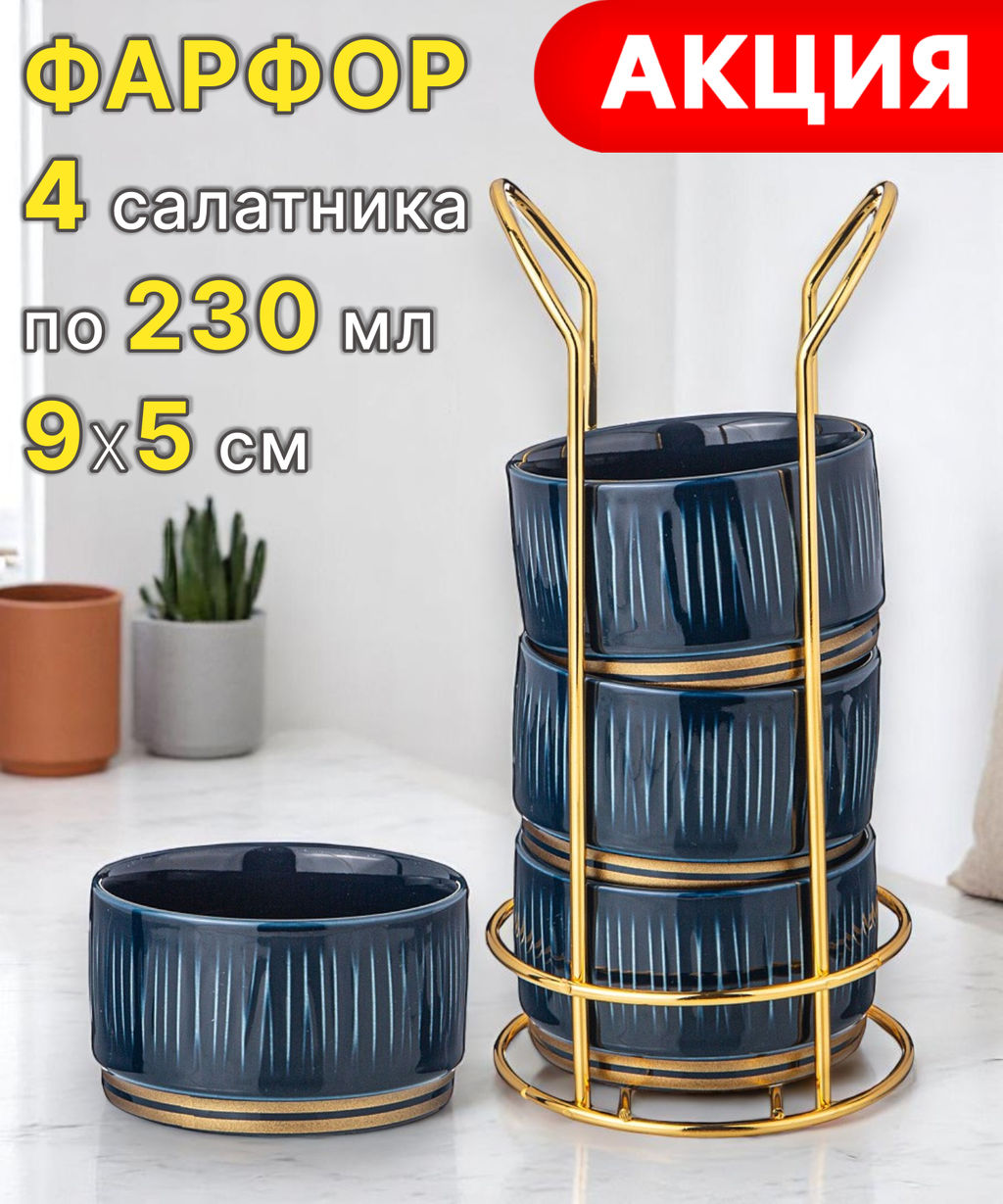 НАБОР САЛАТНИКОВ LEFARD HERBAL НА МЕТАЛЛ. ПОДСТАВКЕ 4 ШТ. 9*5 СМ 230 МЛ СИНИЙ