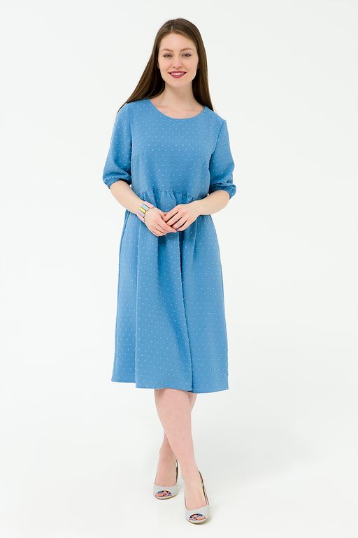 Платье со сборкой синее